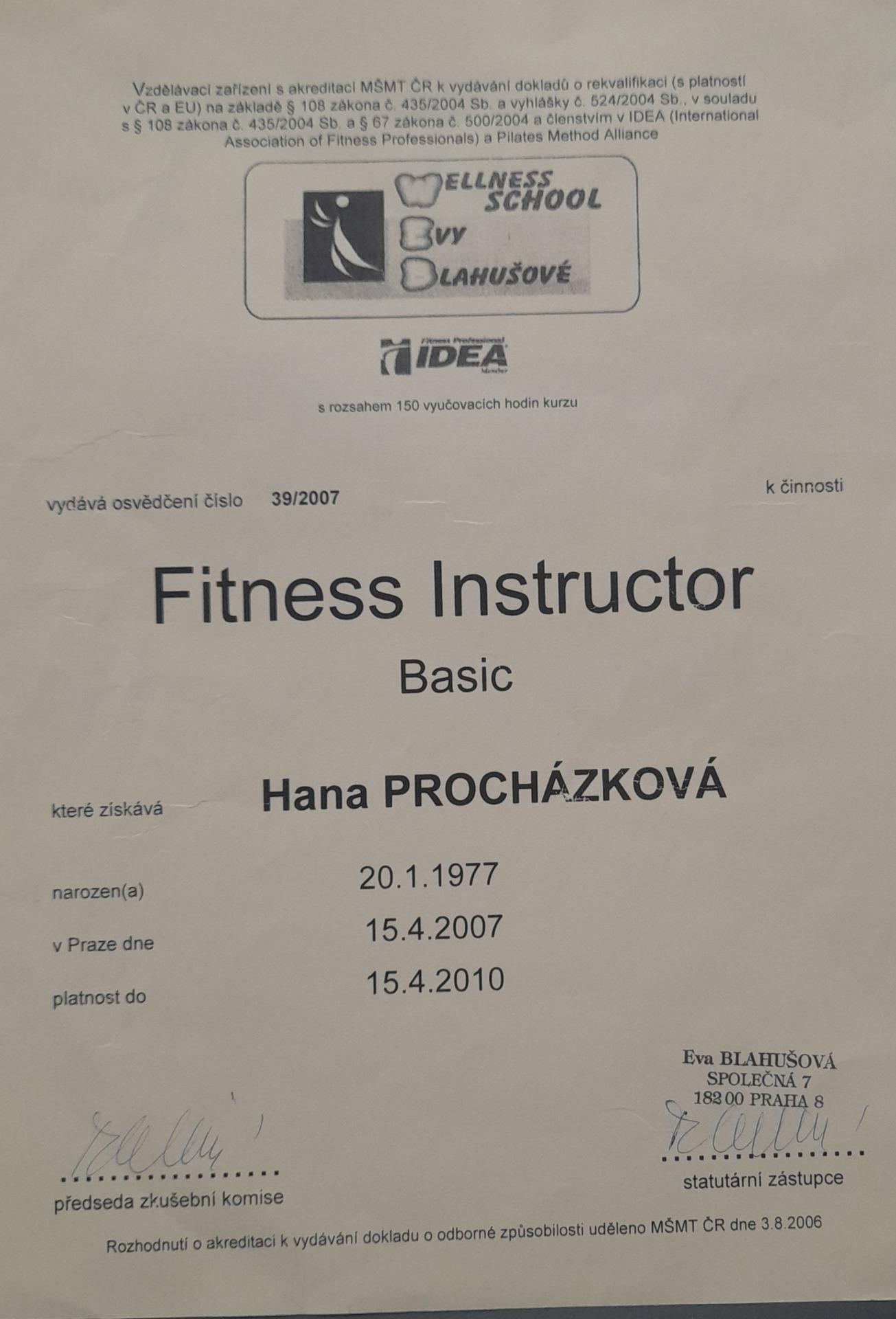Zkoušky jsem úspěšně složila 15. 4. 2007. Tuto licenci musím každé 3 roky